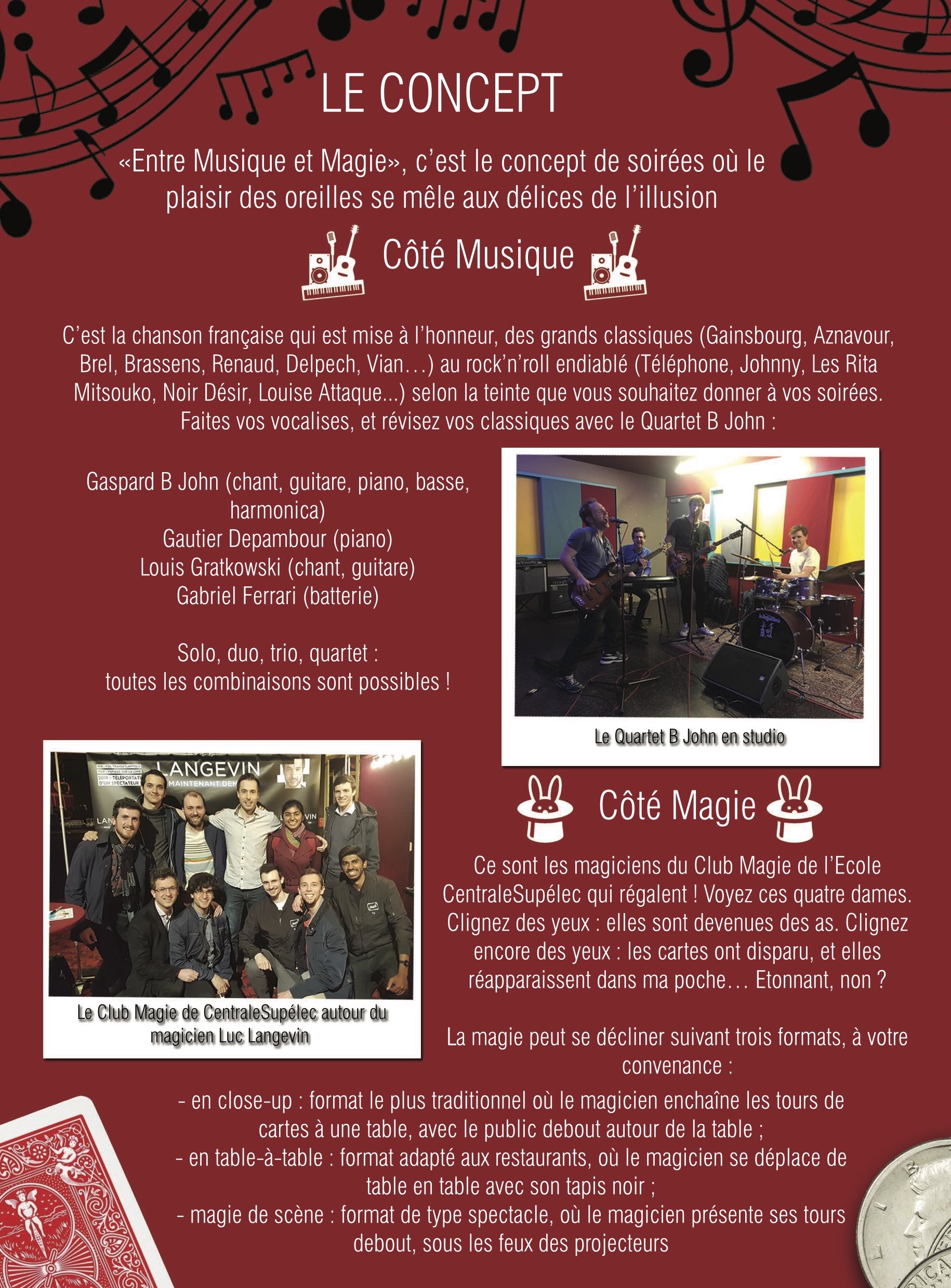 Lors des soirées Entre musique et magie, je suis tantôt musicien (piano bar ou accompagnement), tantôt magicien (cartes) !
